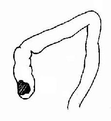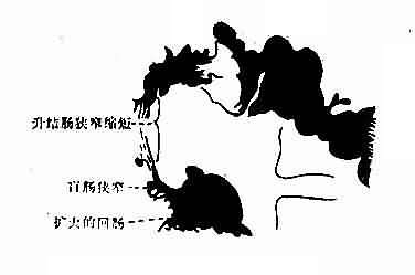 常缩短,同时侵犯回肠时,盲肠处病重。 |