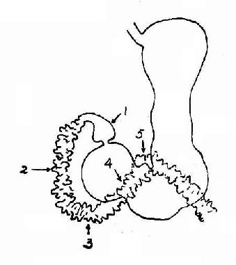 1.球部 2.降部 3.横部 4.升部 5.十二指肠空肠曲