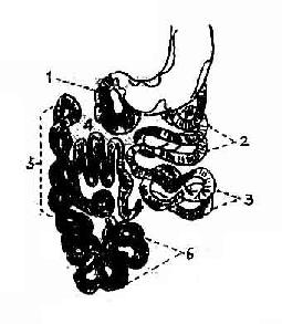 1.十二指肠2 .空肠上部 3.空肠下部 4.回肠上部