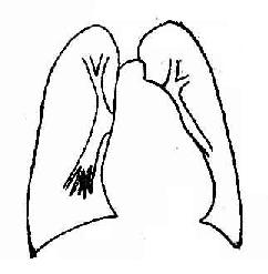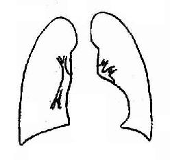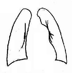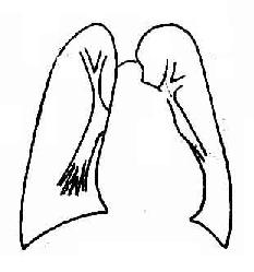 后前位:缺损小分流量少,心肺多属正常。缺损大分流量多,心脏呈“二尖瓣”型,主动脉结正常或缩小,肺动脉段凸出,左室变圆隆,肺充血。