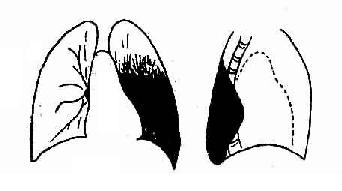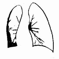 X线表现:少量气胸在肺尖部显示无肺纹的透光区。被压缩的胸膜脏层如与肋骨重叠,则难以发现。大量气胸可将肺向肺门方向压缩。呈密度均匀的软组织影,由于它含气量减少致透光度减低,肺纹聚拢,其边缘有脏层胸膜形成的纤细的致密影,呼气时清楚,同时可见纵隔向健侧移位,患侧横膈下降,肋间隙增宽。张力性气胸时,可发生纵隔疝。如有胸膜粘连,可见该处肺不被压缩,呈条状阴影与胸壁相连。健侧肺可有代偿性肺气肿。