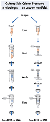 专为从新鲜全血中快速提取高质量的RNA而设计,专利设计的QIAshredder和QIAamp离心纯化柱让你彻底摆脱酚氯仿抽提和离心沉淀的苦恼,简便快速地纯化出适用于各种用途的优质RNA。 QIAamp Viral RNA Mini Kit则适用于从各种无细胞的体液、血清、尿液、CSF中分离RNA,回收率高达90%以上。