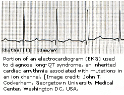 LONG-QT综合症(LQTS)起因于心脏钾离子通道的不正常结构,使受到影响的人感染加速心率失常。这就会导致突然丧失意识和引起突然的心脏病患者死亡。患有心脏病的青少年当他面对从锻炼至大声喧嚷的压力都会出现心脏瘁死的危险。