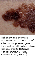在1997年大约40300美国人被诊断出具有恶性黑色素瘤,黑色素瘤是一种最具攻击性的皮肤癌。黑色素在具轻微色素皮肤人群中是最普通的,有黑色素瘤的人群是易发展成新黑色素瘤的高危人群。