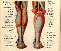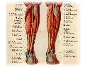 小腿后区有浅、深两层肌肉。浅层肌为小腿三头肌,深层肌有三块,即胫骨后肌、趾长屈肌和长屈肌。在浅、深两层肌之间有二条动脉及一条神经,即:胫后动脉posterior tibial artery 、腓动脉和胫后神经tibial nerve。神经于二动脉分叉后越过胫后动脉浅面,并在二条动脉之间下降,三者贴附于骨平面,在胫骨后肌筋膜深面,肌内、外缘及其中间下行。至小腿下端,神经趋向胫侧血管进入踝管,而腓动脉独自进入外踝下方。