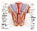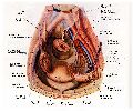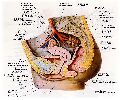 子宫呈倒置梨形,前后略扁,可分为底、体、颈三部。上端向上隆凸的部分叫子宫底。下部变细部分叫子宫颈,底与颈之间的部分叫子宫体。底、体内的腔叫子宫腔;子宫颈的内腔叫子宫颈管,上口叫子宫内口,通子宫腔;下口叫子宫外口,通阴道。
