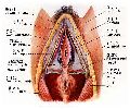 阴道是一前后压扁的肌性管道。上端连接子宫颈,二者间形成阴道穹,可分前部、后部和侧部。下部穿过尿生殖膈,开口于阴道前庭。处女的阴道口周围有处女膜附着。