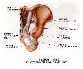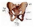 由骶、尾骨和左右髋骨及其韧带连结而成。被斜行的界线(后方起于骶骨岬,经髂骨弓状线,髂耻隆起,耻骨梳、耻骨结节,耻骨嵴到耻骨联合上缘连线)分为两部:界线以上叫大骨盆;界线以下叫小骨盆。小骨盆有上、下两口,上口又称为入口,由界线围线;下口又称为出口,高低不平,呈菱形,其周界由后方前为尾骨尖、骶结节韧带、坐骨结节、坐骨下支、耻骨下支、耻骨联合下缘。两侧耻骨下支在耻骨联合下缘所形成的夹角叫耻骨角,男性约为70~75°,女性角度较大,约为90~100°。