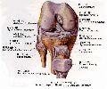 关节囊较薄而松弛,前方有髌韧带,是股四头肌肌腱的延续,止于胫骨粗隆。在髌韧带的两侧,有髌内、外侧支持带,为股内侧股和股外侧肌腱膜的下延。后方有腘斜韧带。内侧有胫侧副韧带,外侧为腓侧副韧带。
