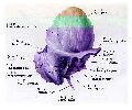 岩部有三个面,尖端朝向前内侧,前上面中部有一弓状隆起,其外侧为鼓室盖,靠近锥体尖处,有三叉神经压迹。后上面近中央部分有内耳门。下面对向颅底外面,近中央部有颈动脉管外口,在锥体尖处形成颈动脉管内口;外口的后方为颈静脉窝。窝的外侧有细而长的茎突和乳突,二者根部有茎乳孔。乳突内有空腔叫乳突小房,上方较大,叫鼓(乳突)窦。