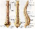 椎弓 vertebral arch在椎体后方,与椎体相连的部分叫椎弓根,稍细,上下各有一切迹,下切迹较明显。相邻椎骨之间在椎弓根处形成椎间孔intervertebral foramina。椎弓的后部呈板状,叫椎板。椎体和椎弓共同围成椎孔vertebral foramen,24个椎骨的椎孔连成椎管vertebral canal。椎弓上有七个突:向后方伸出的一个叫棘突spinous process;左右各伸出一个横突transverse process;椎弓上下各有一对突起,叫上、下关节突superior and inferior articular processes。