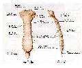 骶骨呈三角形,分底、体、尖,前、后面,两侧缘。底向上,尖向下。前面凹,有4条横线和四个骶前孔。后面凸,有四个骶后孔,骶外侧嵴,骶中间嵴,骶下中嵴。中部有骶管,并与骶前孔和骶后孔相通,骶管后下端敞开叫骶管裂孔。骶骨体上面前缘突出,叫岬。两侧及关节面,叫耳状面。耳状面的后方骶骨粗隆。