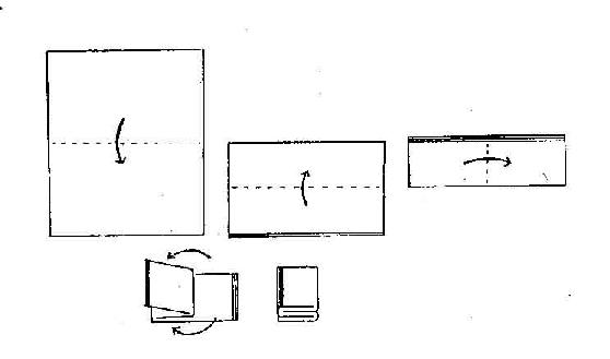 1.无菌治疗巾的折叠法 将双层棉布治疗巾横折2次,再向内对折,将开口边分别向外翻折对齐(图5-13)。