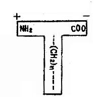 2.人体许多组织成分有电介质或导磁体性质:干的皮肤、肌腱、韧带、骨膜、骨等组织的电阻较大,有电介质性质。电介质在直流电或低频电流中,被认为是一种绝缘体;在高频电场作用下,电介质原子中的电子虽不能脱离原子,但其中带负电荷的电子和带正电荷的原子核在原子内发生位移,即带负电的电子移向电场正侧,带正电的原子核移向电场负侧,这种现象称子电介质的取向或极化,形成偶极子(图5.1.7A.B)。在高频交流电场作用下其极性是迅速交变的,每交变一次,偶极子也随之重新取向一次,引起偶极子不断地旋转,由于电流的概念是电荷的移动,因此偶极子内束电荷的移动就形成电流。这种电流是由于偶极子内束缚电荷的位置相对移动产生的,故称为移电流。人体的氨基酸和神经鞘磷脂(Sphingomyelin)就是一种偶极子形式(如图5.1.8,图5.1.9)。在氨基酸分子式中,水平部分表示有极性的侧链,左方有带正电的氨基(NH2+),右方有带负电的羧基(COO-),垂直部分表示无极性呈中性。又在神经鞘磷脂图中(图5.1.9)“Y”形式左上方为碳氢化合物部分,右上方为脂肪酸,这二部分有很弱的而且分散的负电性,“Y”形下端有较强的正电性。