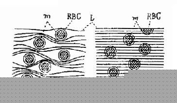 BRC-红血球,m-细胞膜;L-电力线;A-低频电疗时电力线的分布;