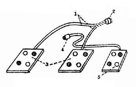图4.2.5 吸盘电极 1.吸盘 2.吸盘内的电极板 3.内有导线的抽管 4.插头 |