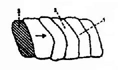 图4.2.4 手套电极 1.固定带 2.电极外套 3.铅板(抽出少许) ←示伸入方向 |