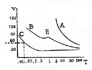 这种曲线的成因是:肌肉中一部分纤维失神经支配,另一部分的神经支配仍完整。当通电时间长时,两者均有反应。但因失神经部分的兴奋性低,因此阈值比正常值高些,但不会太高,因其中还有正常支配的部分。曲线高于C而低于A。