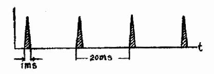 随着电子技术的发展,目前已用电子管或晶体管仪器产生出类似感应电流中的高尖部分而无低平部分的尖波电流,称为新感应电流,如图3.2.2。也有人将频率50~100Hz,t有效0.1~1ms的三角波或锯龆齿波统称为感应电流。