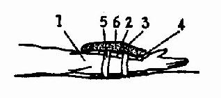 图2.2.4治疗时电极的放置 1-人体 2-衬垫 3-金属电极板 4-塑料布 5-塑料搭扣 6-沙袋 |