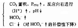 阴离子(除HCO3-外)减少如何碱中毒?——与上面者相反,此时最容易变动的HCO3-就增多,上面化学反应式的反应向左进行,(H+)降低,pH值上升,趋于碱中毒。