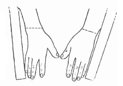 尺骨茎突和桡骨茎突在同一平面,量尺试验阳性(图3-42)。放量尺在肱骨内上髁和小指尺侧,量尺与尺骨茎突间距离正常为2cm左右,桡骨下端骨折后。因手向桡侧移位,此距离减少或消失。
