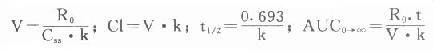 由式(26)可推导得非线性动力学消除时的有关药动学参数计算公式: