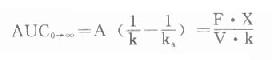 在计算其它药动学参数时,反映药物被机体吸收利用程度的吸收分数F,即生物利用度(bioavailability)是必须首先先知道的。血管外注射用药时,一般均视为F=1。而现在多数口服药在说明书中已告知F值,否则需根据某药口服时AUC与该药同剂量静脉注射时的AUC相比计算出。口服时的AUC可用前述梯形法,或按下列积分法公式求得:
