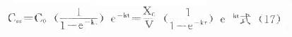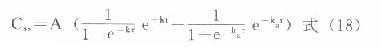 显然此时的多剂量函数式为一常量,此即稳态时的多剂量函数式。分别代入式⒂或⒃中可得: