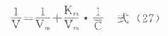 式(27)为1/V随1/C变化的直线方程(图9-12)。该直线与纵轴交点为1/Vm,斜率为Vm/Km,故可分别求出Vm和Km。