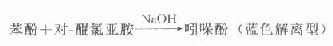 对-醌氯亚胺同另一分子的酚作用,形成吲哚酚,它在碱性溶液中产生蓝色的解离型吲哚酚: