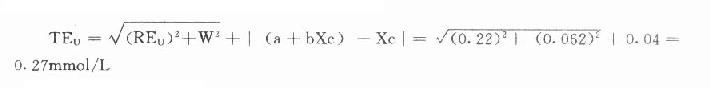 SEL=|(Yc±W)-Xc|L=|(11.04-0.062)-11.0|L=0.022mmol/L