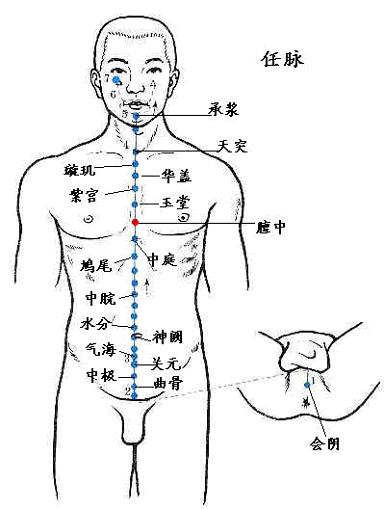 ◎特性:对应七轮中的「心轮」。属于奇经八脉中的「任脉」,任、督二脉是人体的两大高速公路,所以它的交流道机能不同于一般的十字路口。所谓「气会膻中」,脑是髓之海,膻中是气之海,本穴属于八会穴之一,所以效用非常广泛。