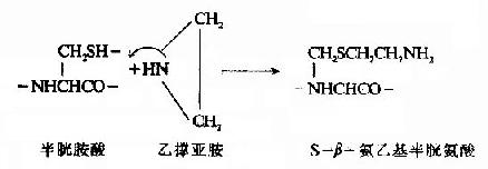 (3)半胱氨酸的修饰。若肽链内Lys、Arg均较少,则为了增加胰酶的裂解点,可以将半胱氨酸进行氨乙基化,其产物Sβ氨乙基半胱氨酸有类似Lys的结构,胰蛋白酶在水解时,不能识别这微细的变化,从而在半胱氨酸处断裂。
