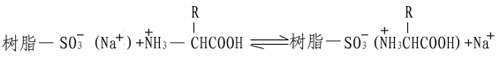 Spaekman等发展了一种精确的氨基酸组分的定量方法。他们采用磺酸型的离子交换树脂,这是一种高分子量的固体聚苯乙烯,带有大量的功能基团,磺酸基在低pH和低离子强度条件下,根据氨基酸的酸碱性,氨基酸带正电,于是替换下树脂上的Na+,借助静电作用而结合到磺酸基上。
