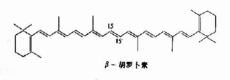 β-胡萝卜素可被小肠粘膜或肝脏中的加氧酶(β-胡萝卜素-15,15′-加氧酶)作用转变成为视黄醇,所以又称做维生素A元(provitamin A)。尽管理论上1分子β-胡萝卜素可以生成2分子维生素A,但由于胡萝卜素的吸收不良,转变有限,所以实际上6微克β-胡萝卜素才具有1微克维生素A的生物活性。