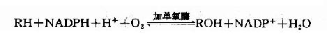(1)加单氧酶 又称为多功能氧化酶、混合功能氧化酶(mixed function oxidase)、羟化酶(hydroxylase)。加单氧酶催化O2分子中的一个原子加到底物分子上使之羟化,另一个氧原子被NADPH+H+提供的氢还原生成水,在此氧化过程中无高能磷酸化合物生成,反应如下: