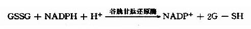 生成的GSSG又可在谷胱甘肽还原酶催化下由NADPH+H+供氢还原生成G-SH: