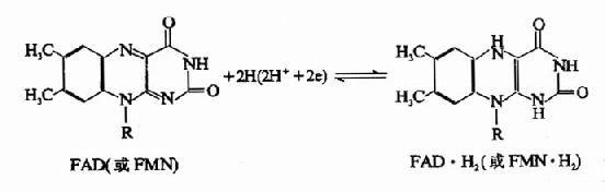 在FAD、FMN分子中的异咯嗪部分可以进行可逆的脱氢加氢反应。
