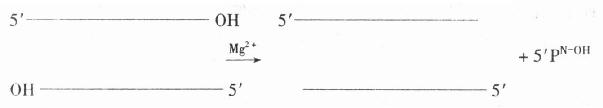 前一种酶需要镁离子作辅助因子才有活性;后一种酶则不需镁离子,因此即使在有螯合剂EDTA的情况下也有活性。另一种从噬菌体λ感染的大肠杆菌中提取的λ核酸外切酶是从带有5’磷酸末端的双链DNA上,逐个切除5’单核苷酸,在反应时需要镁离子: