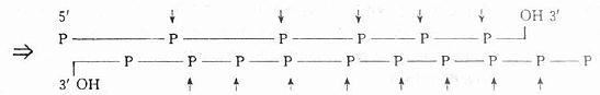 大肠杆菌核酸外切酶Ⅶ则是从单链DNA的3’端和5’端切除寡核苷酸(两种形式):