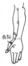 针刺或手导引人中(见图57)、合谷(见图46)、内关(见图41)、定喘、鱼际、廉泉、天突(图54~56等穴。每次2~4穴,每日3次,每次20~30分钟。