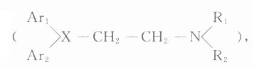 Ar1和Ar2可为苯环或杂环,X可为氮、氧或碳,并与主核相联。乙基胺与组胺的侧链相似,对H1受体有较大亲和力,但无内在活性,故能竞争性阻断之。