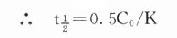 Ct=C0- Kt,C0为初始血药浓度,Ct为t时的血药浓度,以C为纵座标、t为横座标作图呈直线(图3-6),斜率为K,当Ct/C0=1/2时,即体内血浆浓度下降一半(或体内药量减少一半)时,t为药物消除半衰期(half-life time, t1/2)。