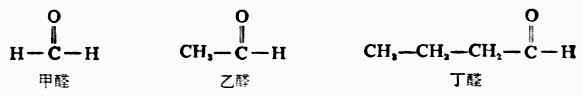 简单的脂肪醛按分子中的碳原子的数目,称为某醛。例如: