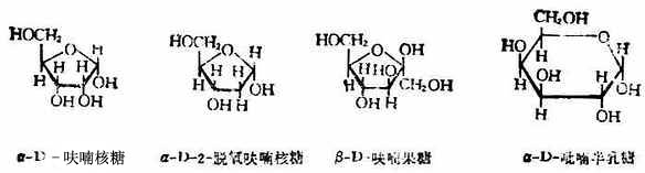 自然界已发现的单糖主要是戊糖和己糖。常见的戊糖有D-(-)-核糖、D-(-)-2-脱氧核糖、D-(+)-木糖和L-(+)-阿拉伯糖。它们都是醛糖,以多糖或苷的形式存在于动植物中。常见的己糖有D-(+)-葡萄糖、D-(+)-甘露糖、D-(+)-半乳糖和D-(-)-果糖,后者为酮糖。己糖以游离或结合的形式存在于动植物中。