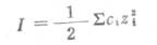 式中,I代表溶液的离子浓度;c是离子的量浓度;z是离子的电荷数.