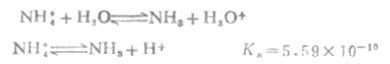 NH4+离子是NH3的共轭酸,它在水中电离: