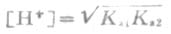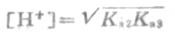 HCO-3作为酸,根据数学推导,当Ka2C>20KW,且c>20Ka1时,水的离解可以忽略,且两性物质浓度不是很稀时,HCO-3溶液中[H+]的近似计算式为