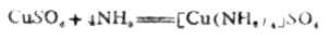 经研究确定,在上述溶液中生成了深蓝色的复杂离子[Cu(NH3)4]2+。从溶液中还可结晶出深蓝色[[Cu(NH3)4]SO4晶体。这说明CuSO4溶液与过量氨水发生了下列反应:
